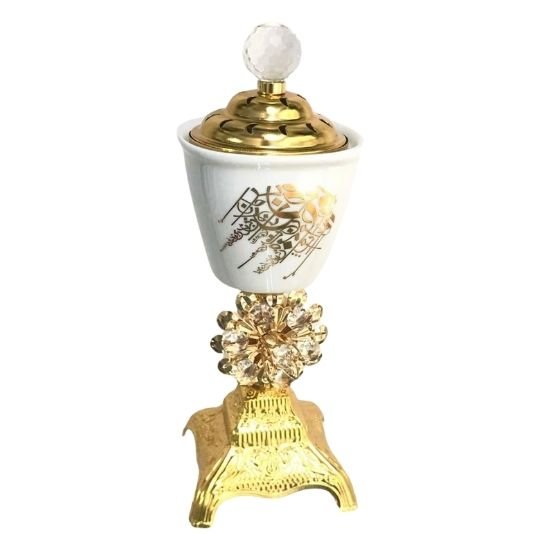 Elegant 10.8 inch White & Gold Arabic Bukhurdaani – A Fusion of Grace & Tradition