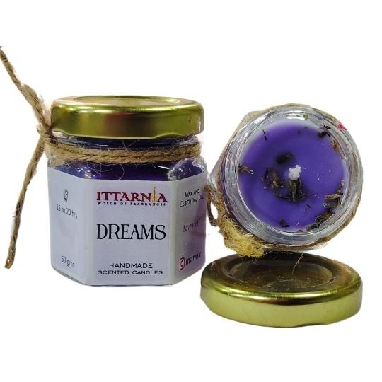 - Dreams (Lavender) Fragrance Candle: – Lavender can symbolize calmness, serenity, and grace. Lavender can symbolize purity, devotion, and silence. The floral fragrance of Lavender makes this scented candle so very refreshing for your living room